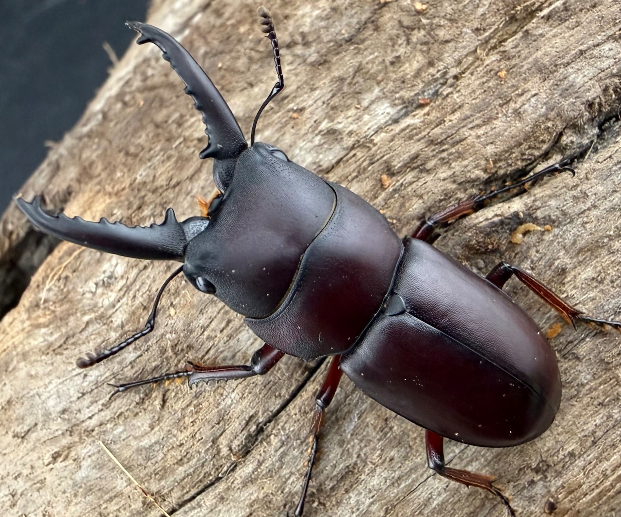 デンティクラトゥスノコギリヒラタクワガタ WD/♂35.5mm/チェンマイ県 ドイインタノン/2025.10入荷 2026.03.02 WD/♂35.5mm/チェンマイ県 ドイインタノン/2025.10入荷 WD/♀24mm/チェンマイ県 ドイインタノン/2025.10入荷 和名 デンティクラトゥスノコギリヒラタクワガタ 学名 Epidorcus denticulatus 産地 ベトナム、タイ、ラオス、中国(雲南省南部) 大きさ ♂27mm~50mm ☆☆評価(KPW主観) 国内流通量(希少性) ★★★☆☆ 飼育難易度 ★☆☆☆☆ 📈 この仲間の相場をKPWで見る 🔎 この種をKPWで探す 関連個体 同じ仲間(分類)からピックアップ クラーツミヤマクワガタ亜種giangae ドルサリスノコギリクワガタ亜種hiromii デタニヒラタクワガタ ボイレアウシカクワガタ アカアシクワガタ クルビデンスオオクワガタ原名亜種 前の個体 ‹ ルックミヤマクワガタ 次の個体 ギラファノコギリクワガタ亜種ニシヤマイ ›