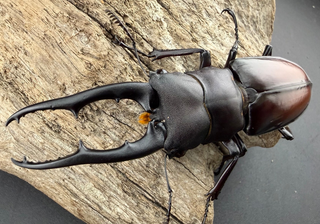 ツカモトフタマタクワガタ WD/♂83mm/中国 広西チワン族自治区 金秀ヤオ族自治県 大瑶山/2025.09灯火採集 2026.03.01 WD/♂83mm/中国 広西チワン族自治区 金秀ヤオ族自治県 大瑶山/2025.09灯火採集 WD/♀41mm/中国 広西チワン族自治区 金秀ヤオ族自治県 大瑶山/2025.09灯火採集 和名 ツカモトフタマタクワガタ 学名 Hexarthrius vitalisi tsukamotoi 産地 中国南東部 大きさ ♂41mm~87mm ☆☆評価(KPW主観) 国内流通量(希少性) ★★★☆☆ 飼育難易度 ★★★☆☆ 📈 この仲間の相場をKPWで見る 🔎 この種をKPWで探す 関連個体 同じ仲間(分類)からピックアップ グランディスオオクワガタ亜種moriyai(ホペイオオクワガタ亜種moriyai) メンシウスヒラタクワガタ オーベルチュールクロツヤシカクワガタ ミンダナオパリーオオクワガタ(リツセマオオクワガタ亜種setsuroi) インプレッシコリスネブトクワガタ亜種パトリック ウーイーミヤマクワガタ 前の個体 ‹ ウエストウッディオオシカクワガタ原名亜種 次の個体 メルキオリティスフタマタクワガタ ›